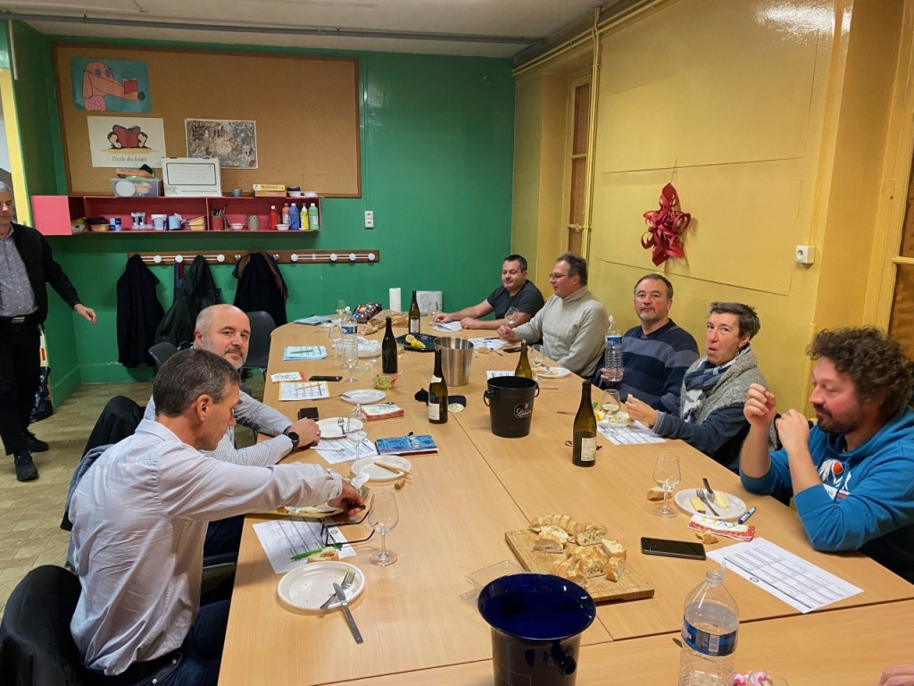 Le vin suivant se distingue des précédents dès les premières effluves d’abricot… Le viognier (Condrieu cuvée La Loye 2021 du domaine JM Gerin) s’exprime et nous propose une bouche bien beurrée et quelques notes briochées (1 an d’élevage en demi-muids de 2 à 5 ans d’âge). Une légère finale sur l’amertume se précise mais tout à fait normale pour l’appellation. Une très jolie bouteille qui retient l’attention de tous.