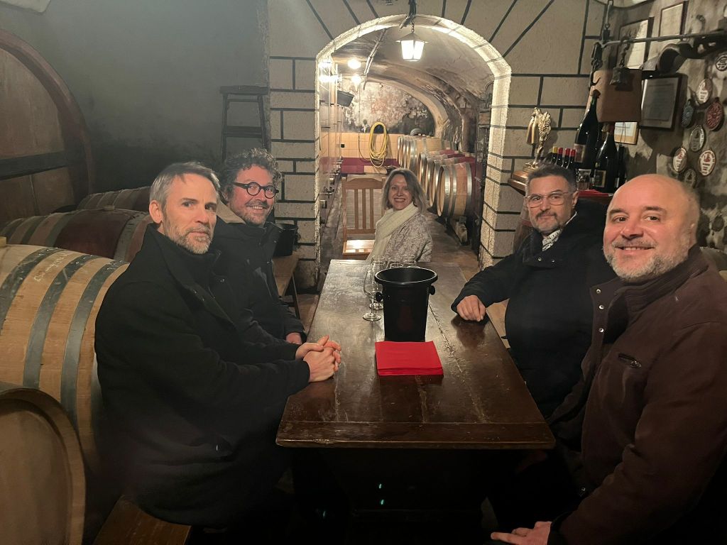 Nous sommes rapidement pris en main par Thomas et nous partons encore une fois pour un tour des installations. Les explications qui nous sont données sont comme à chaque visite, très intéressantes et nous permettent de mieux appréhender les particularités des vins qu’il nous tarde de déguster. Nous nous posons dans la cave où règne une atmosphère propice à la dégustation : lumière tamisée et entourés de futs prêts à livrer leurs secrets…