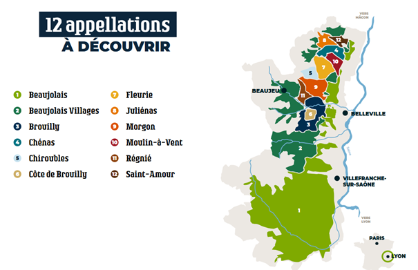 « Le beaujolais s’exprime sur cette diversité de terroirs : au sud du vignoble, les sols sont souvent argileux parfois calcaires et le paysage est caractérisé par une succession de collines rebondies ; tandis qu’au nord, les sols sont souvent sableux d’origine granitique pour moitié. La caractérisation des sols du beaujolais a permis de mettre en lumière plus de 300 profils de sol qui ont été décrits et commentés par des géologues auprès des vignerons, à partir de cartes de sols tracées pour chacune des 12 appellations. La notoriété, les usages, la qualité des vins, le volet sensoriel, ce qui distingue un lieu-dit d’un autre, sont autant d’éléments qui montrent toute la richesse des terroirs du beaujolais. » https://carnet.beaujolais.com/fr/