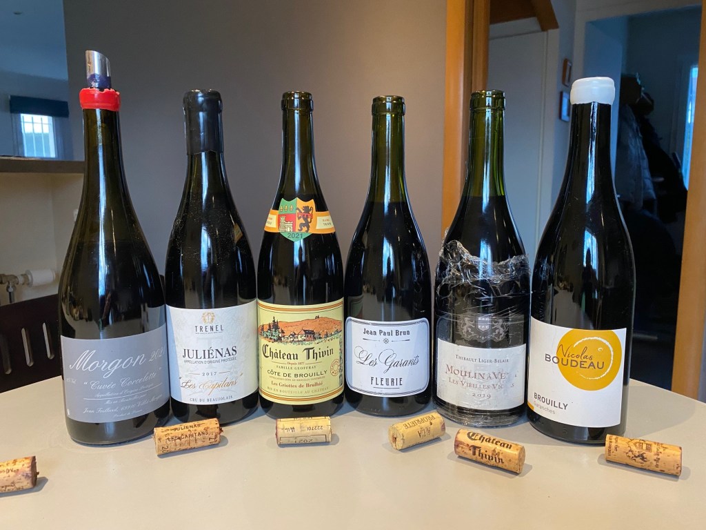 Pas de grande surprise, nous connaissons assez bien les références du coin, mais ça reste toujours intéressant (surtout ensemble) de tenter d’identifier les terroirs en fonction des expressions aromatiques des vins dégustés. Malheureusement, la période a fait que nous avons eu pas mal de nos vins dans le difficile millésime 2021. Cela nous a amené à 2 déceptions en particulier (car on pouvait en attendre plus en termes de profondeur, de maitrise et d’équilibre) : le château Thivin et le domaine Foillard, très en retenu tous les 2 et affichant des niveaux de tension trop marqués.