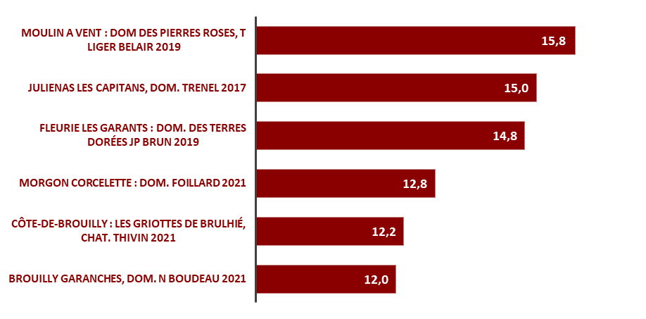 En conclusion de cette séance, c’est le moulin à vent du domaine des pierres roses de Thibeau Liger-Belair (sur le très beau 2019) qui a fait le plus l’unanimité. Un nez très marqué par l’évolution, le sous-bois et l’animal, (ça renarde…). En bouche, c’est une explosion d’arômes, dominée par des notes de torréfaction (on se sentirait presque en côte de nuits !). Très proche derrière, le Juliénas du domaine Trenel a aussi retenu notre attention par sa belle complexité, son mélange de fraises écrasées et de café poivré… Un Juliénas de 8 ans encore en pleine forme !