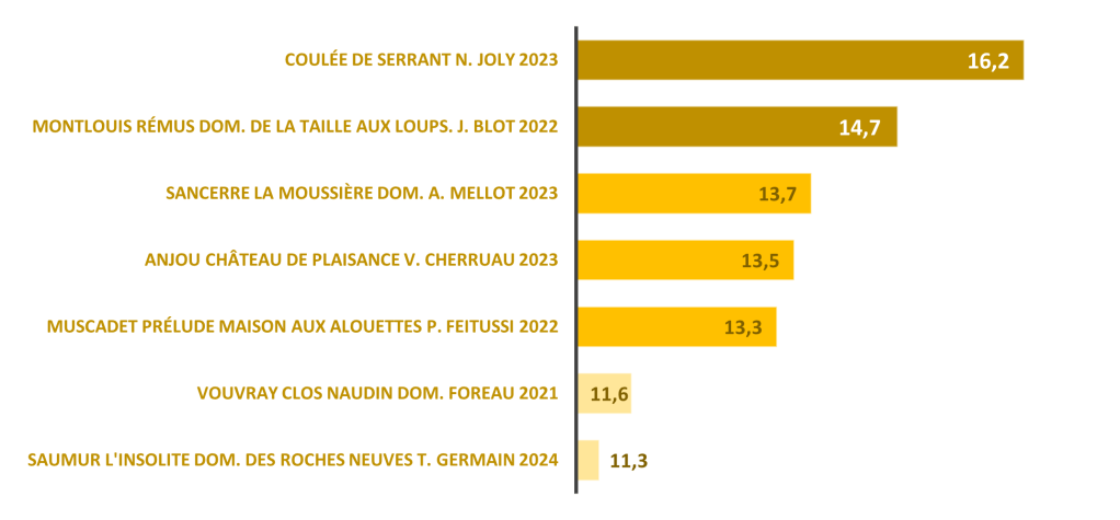 Sans surprise, la 1ere place revient à l’unanimité à la coulée de Serrant, un vin qui serait presque hors compétition…